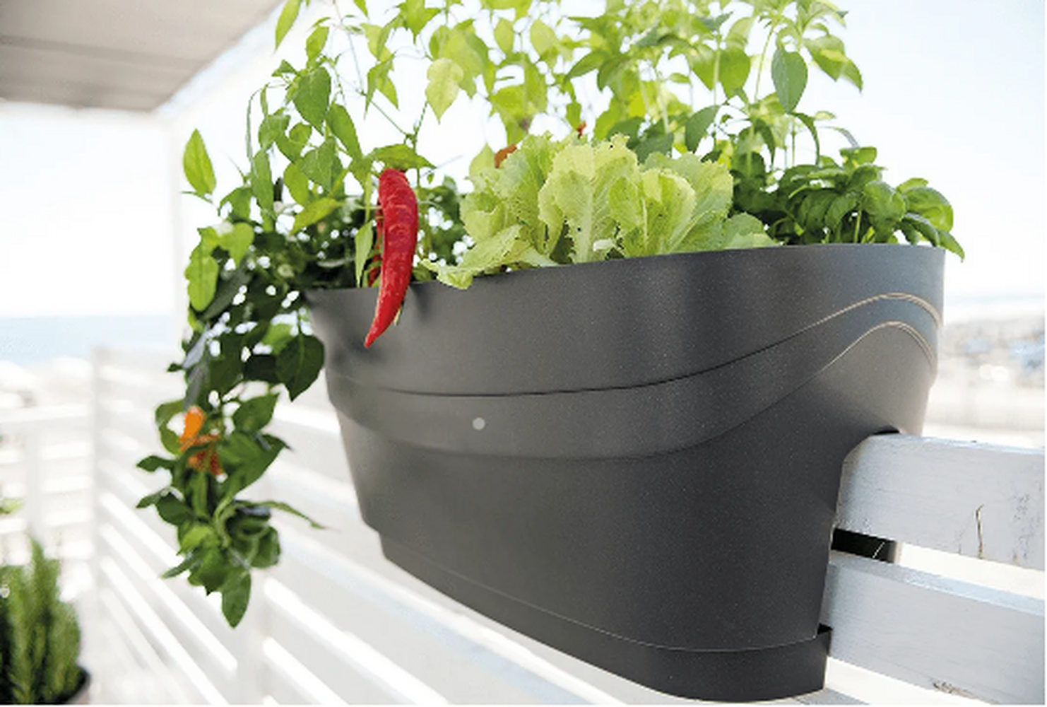 Magas minőségű műanyagból készült, UV- és fagyálló; ellenál az időjárás viszontagságainak. Maximum 6.5cm széles korlátra tehető. A felrakásához nincs szükség szerszámra