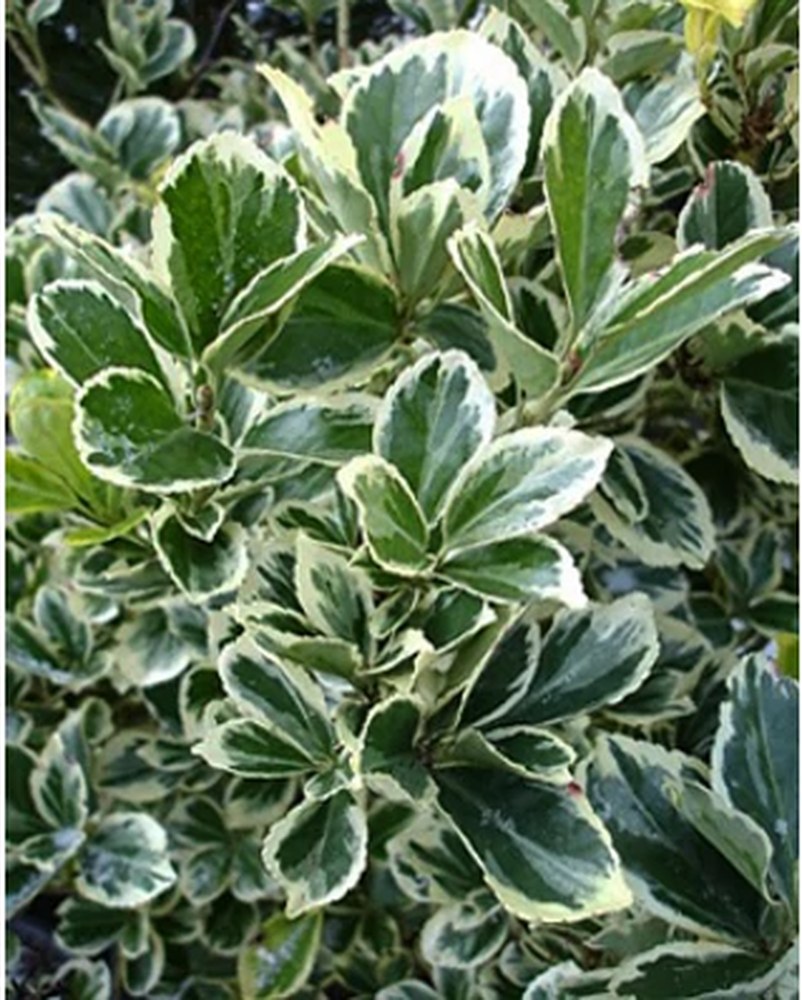 Alacsony növésű, talajtakarásra is alkalmas, örökzöld, tarka levelű cserje. Ősszel a levelek egy része rózsaszínessé válik, fehér virágzat, fehéres bogyótermés jellemzi.