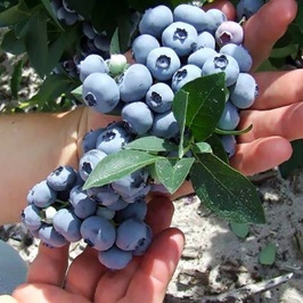 Gyümölcse június végétől július végéig, egyenletesen érik. Fürtje nagy, laza. Bogyója kerekded, enyhén lapított, közepes vagy nagy méretű (kb. 1, 8-2,3 g), hamvas kékesfekete, kemény, roppanó, lédús, meglepően édes, kissé savanykás, zamatos, kellemesen aromás.